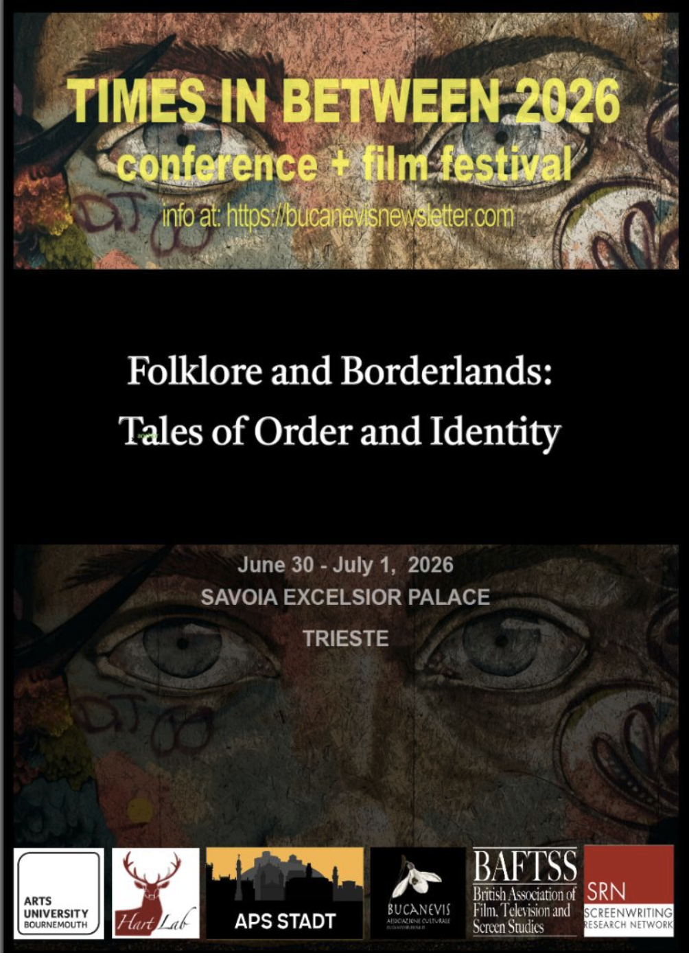 TIMES IN BETWEEN 2026: Folklore and Borderlands: Tales of Order and Identity, (Conference + Festival), with the support of Arts University Bournemouth, British Association of Film, Television and Screen Studies (BAFTSS), Screenwriting Research Network (SRN), NECS – European Network for Cinema and Media Studies, invites contributors to look at folklore and borderlands in cinema and literature adaptation, and to examine how lived, and performed spaces at the borders are shaped by desires of order, shared identity and power relations.